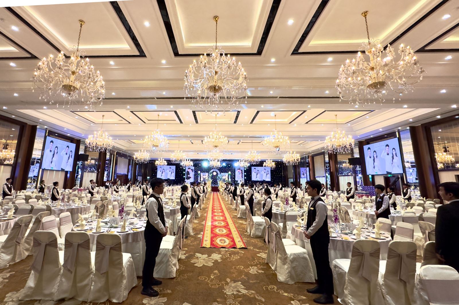 Không ngoa khi nói rằng sảnh King Room là “nhà hát của những giấc mơ”, nơi nghệ thuật trang trí đạt đến đỉnh cao của sự sang trọng và lịch lãm theo đúng phong cách Ba Lê hoa lệ. Toàn bộ khán phòng được thiết kế chăm chút trong từng chi tiết, từ tấm thảm trần óng ả hòa điệu cùng những đèn chùm pha lê trong suốt đến sự kết hợp hài hòa với các họa tiết trên những bức phù điêu các cột trụ, tất cả đã tạo nên sự tinh tế tuyệt mỹ với gam màu trắng ngà quý phái.