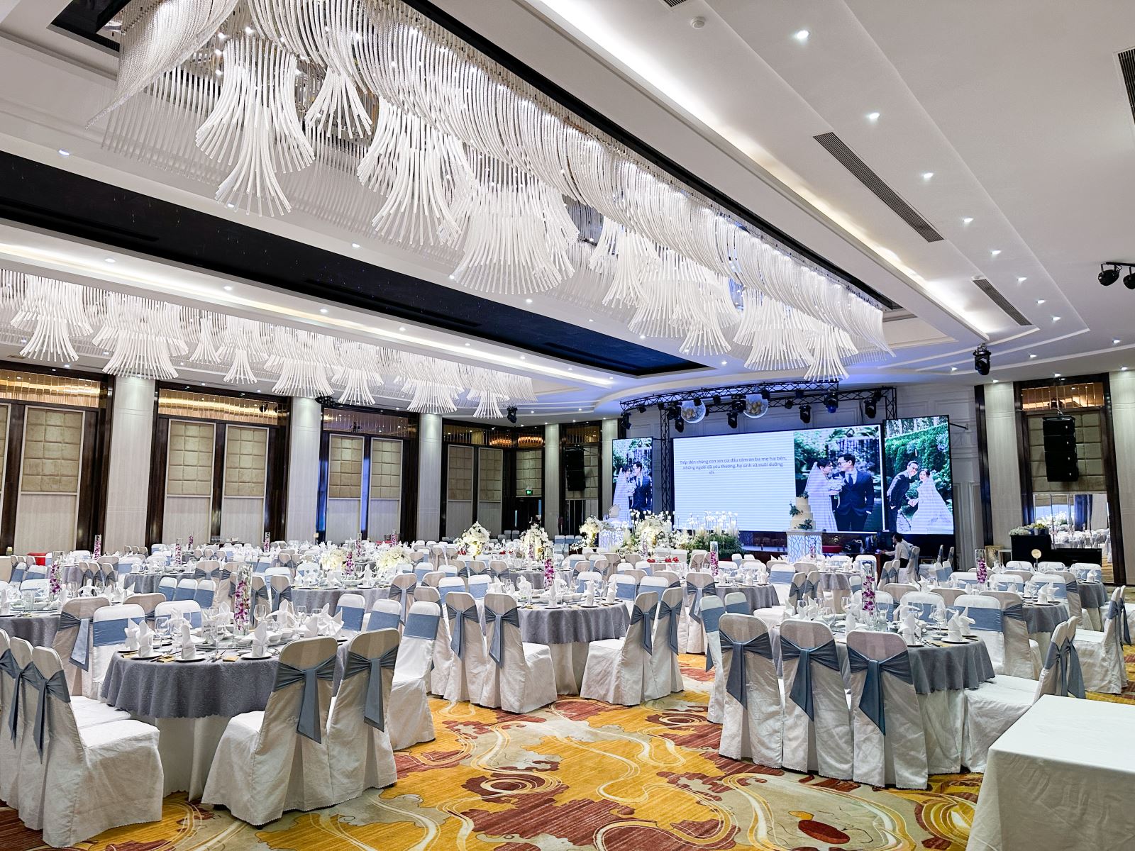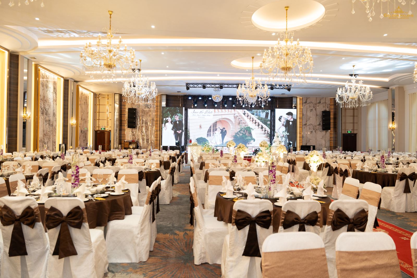 Tại 𝐆𝐨𝐥𝐝𝐞𝐧 𝐏𝐚𝐥𝐚𝐜𝐞, từng chi tiết, từ khoảnh khắc trao tay đầy thiêng liêng, đến màn pháo hoa rực rỡ trên sân khấu, đều được nâng niu để trở thành ký ức trường tồn. Không gian sang trọng, âm thanh ánh sáng lấp lánh và sự tận tâm của đội ngũ đã góp phần biến lễ cưới thành câu chuyện tình yêu trọn vẹn.